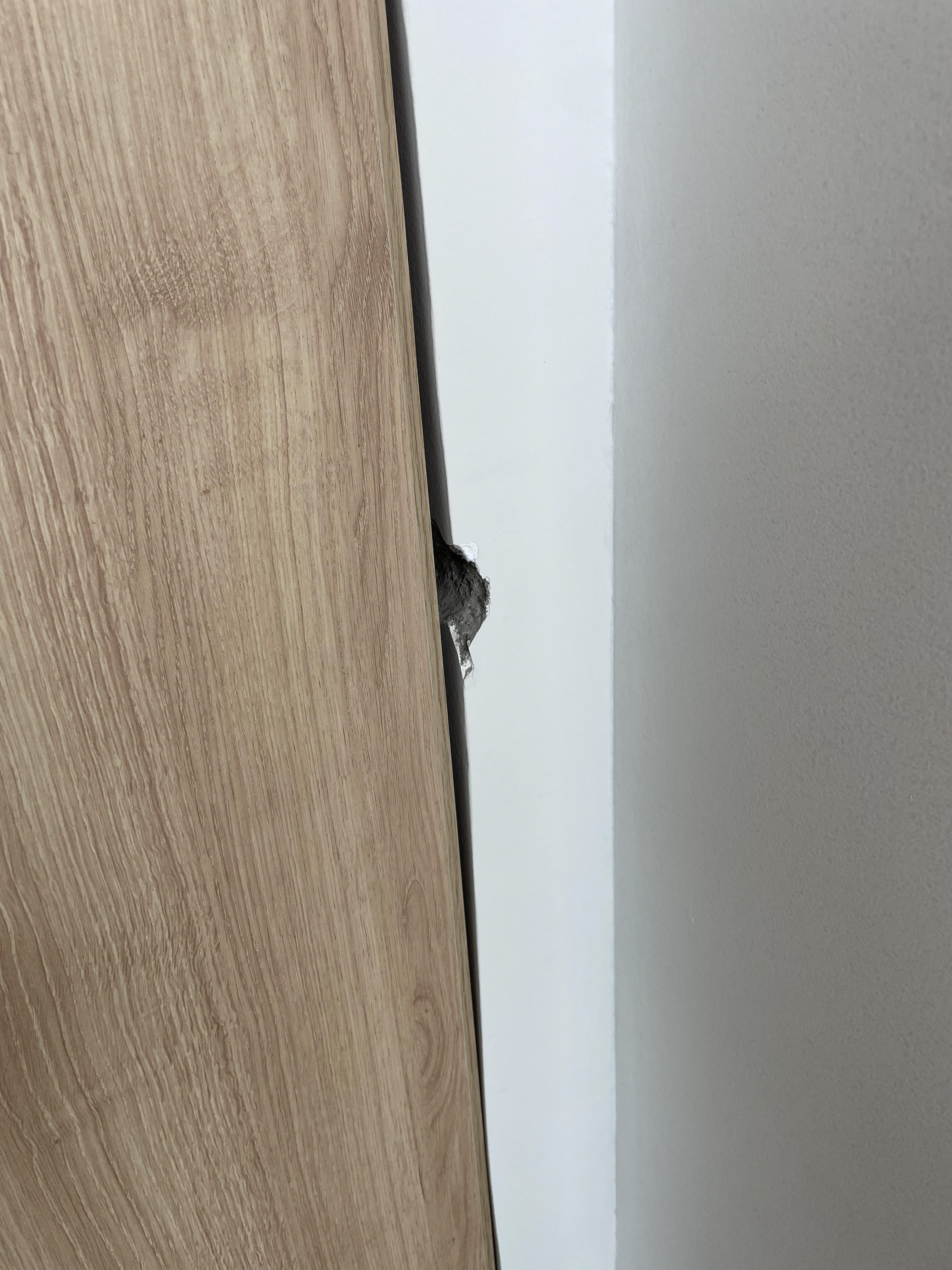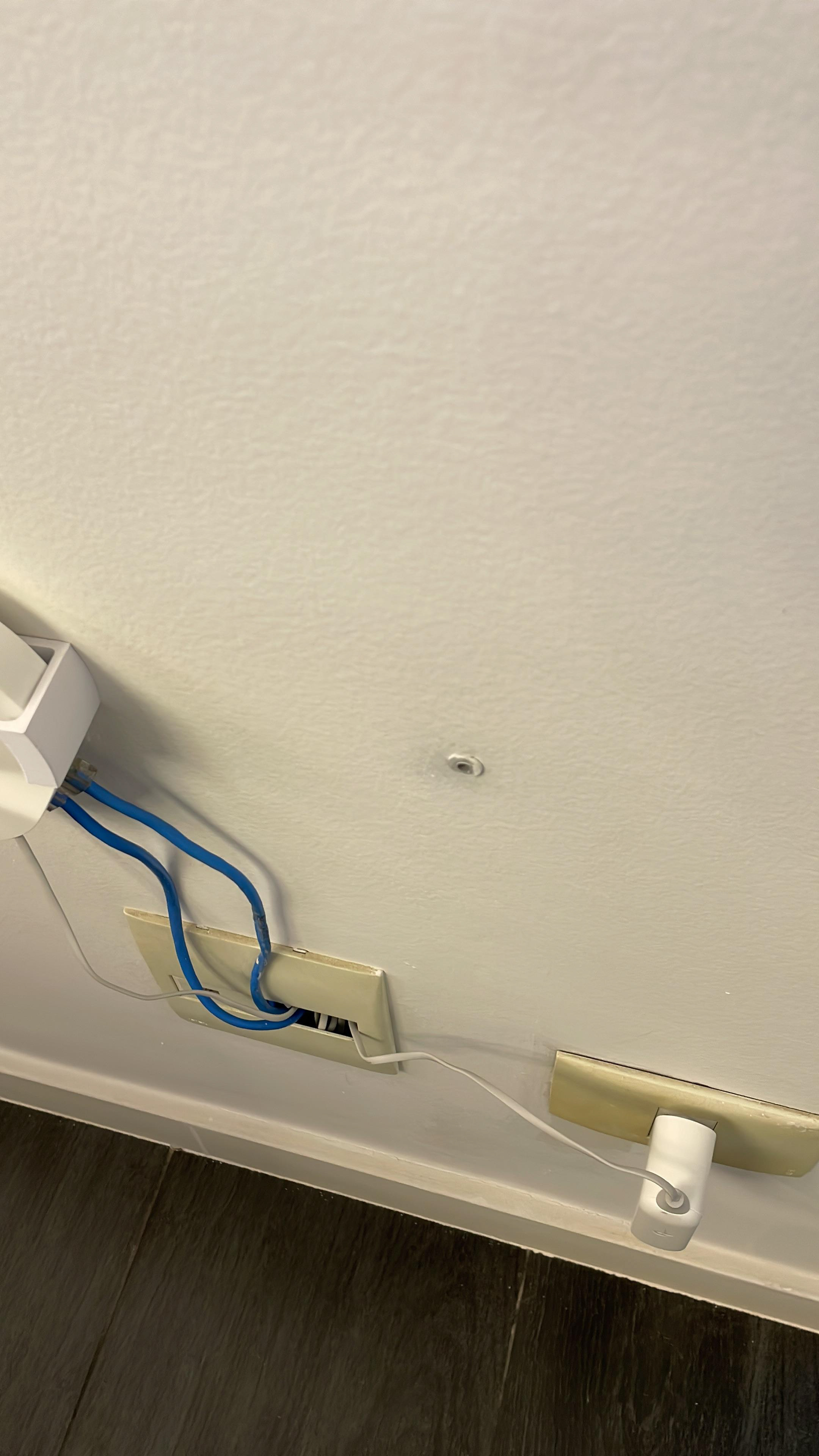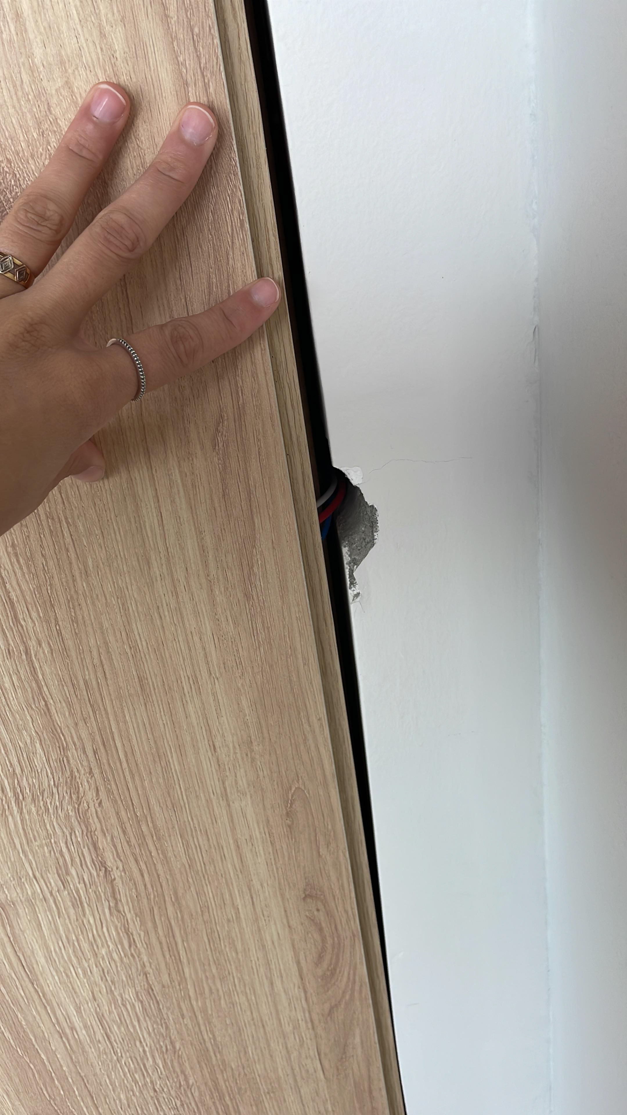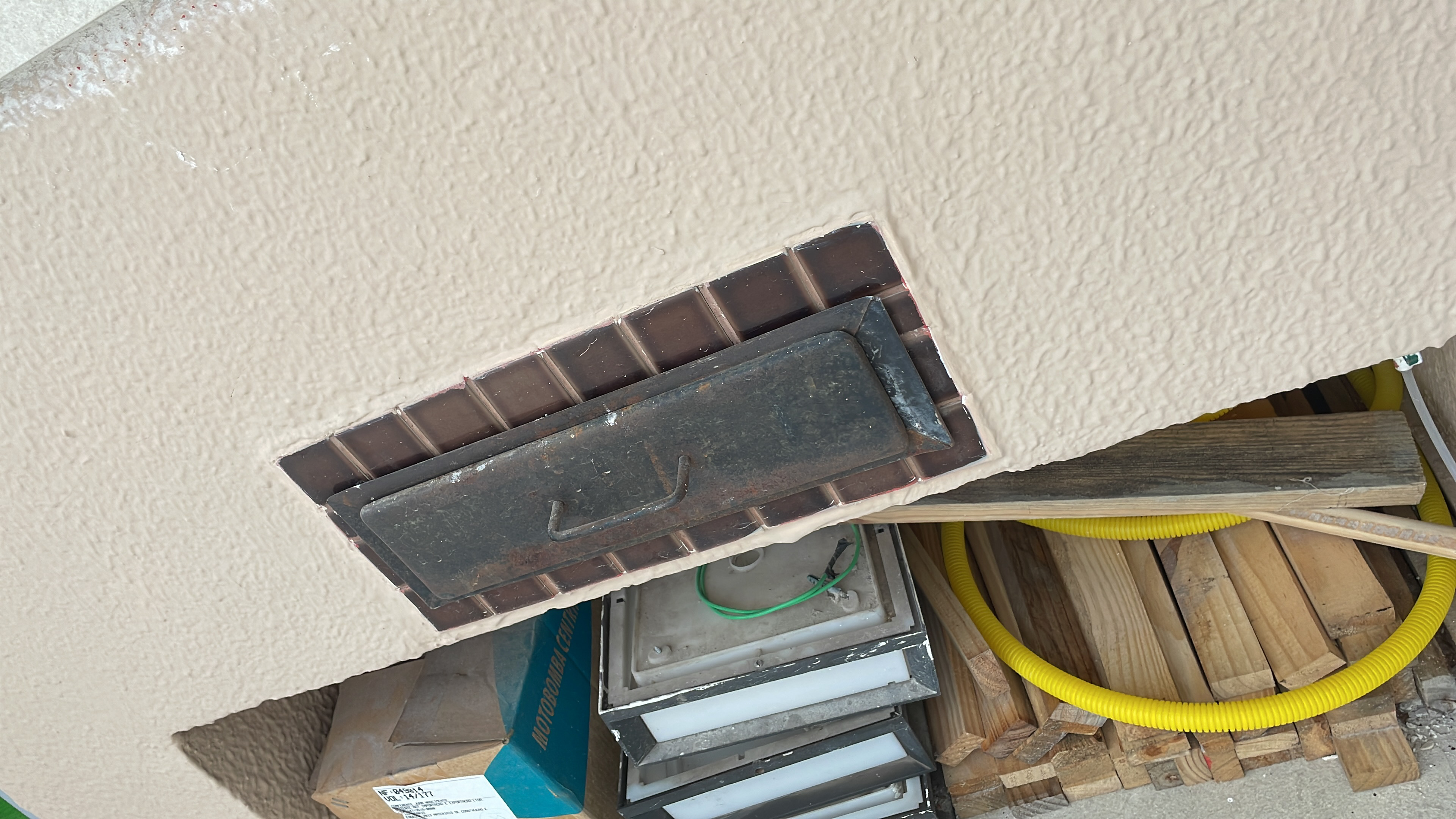 Pontos onde foi passado massa (o eletricista vai abrir uma passagem para instalar o fio, pois a fixação não funcionou)