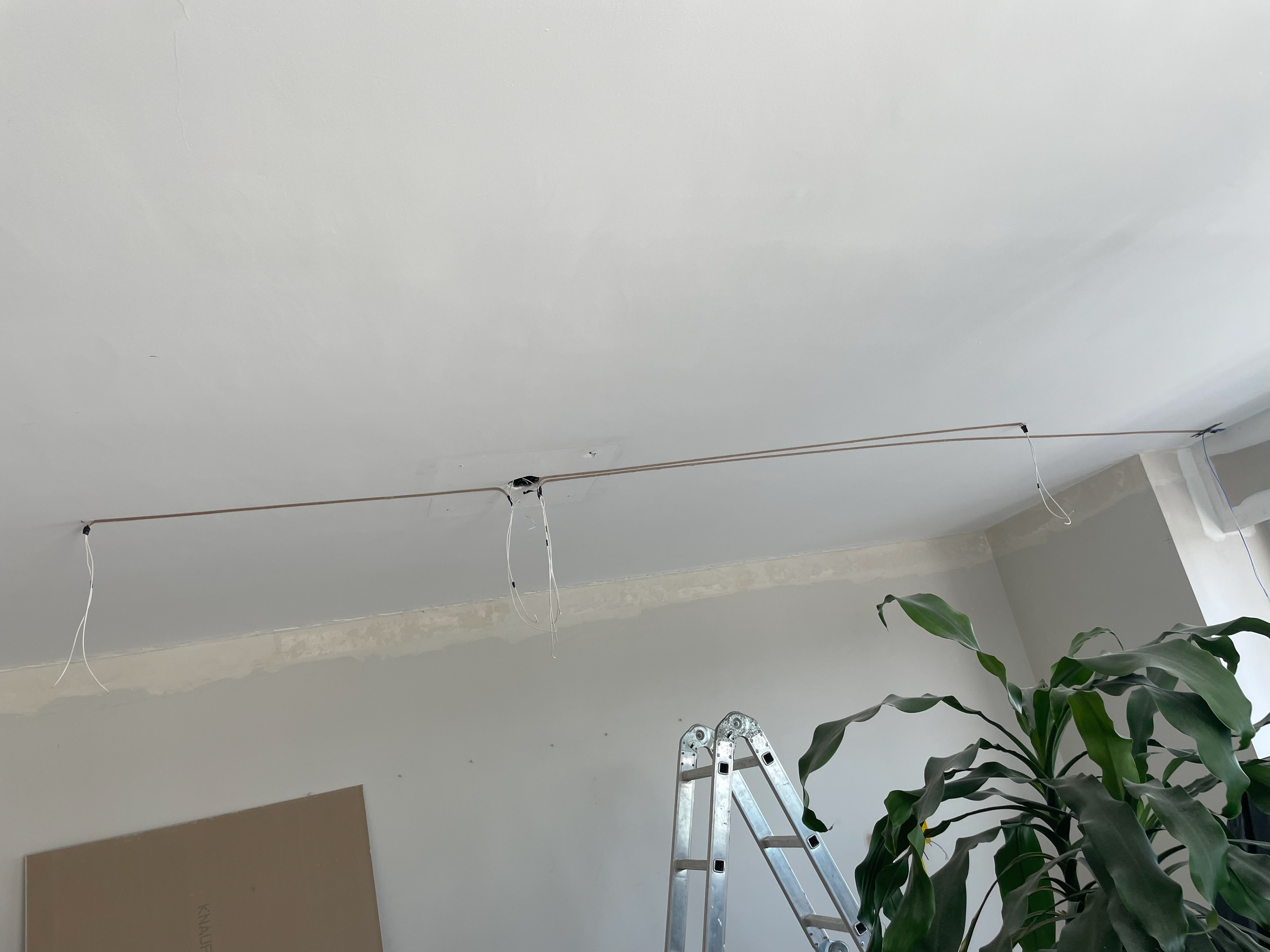 Pontos de iluminação antigos fechados na área entre cozinha e jantar / ponto da nova iluminação já passado