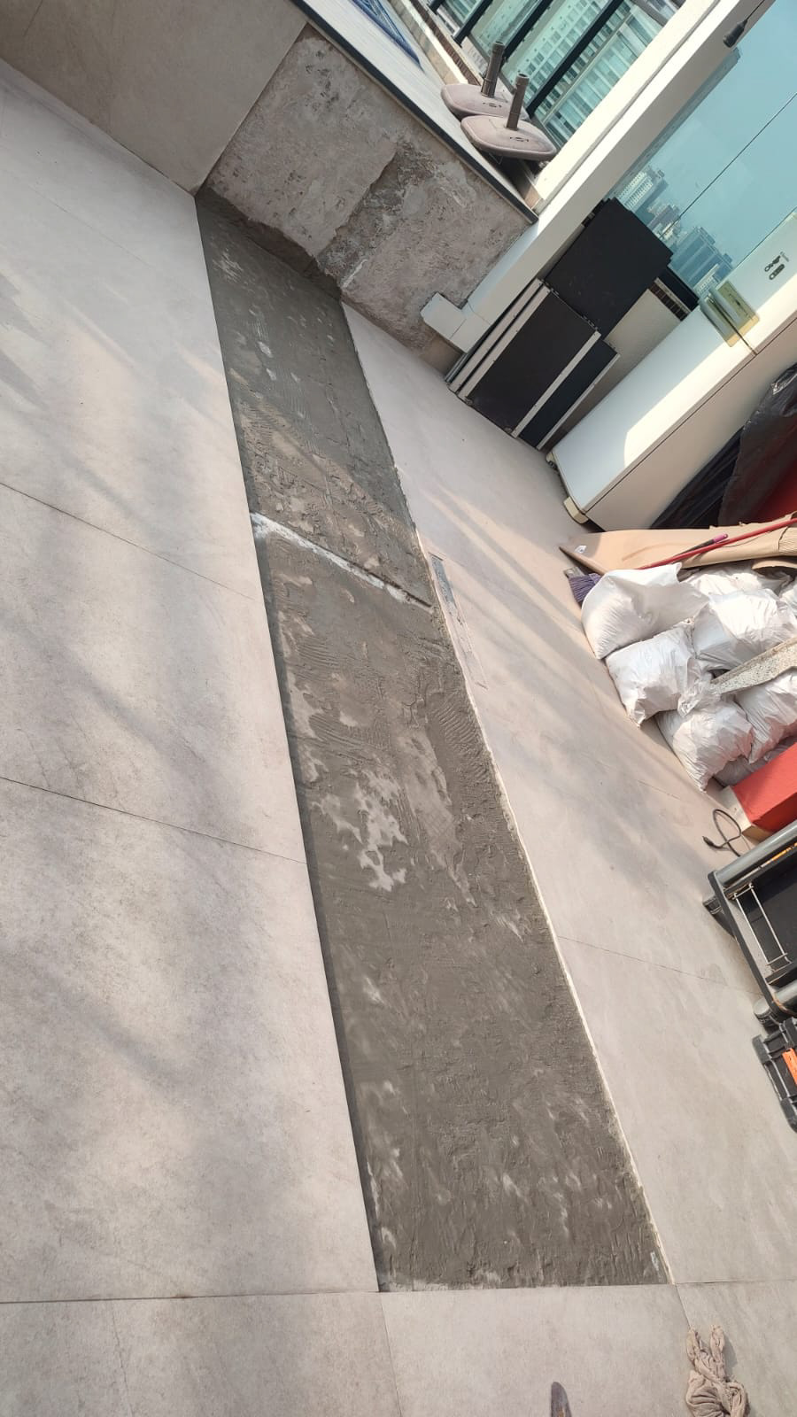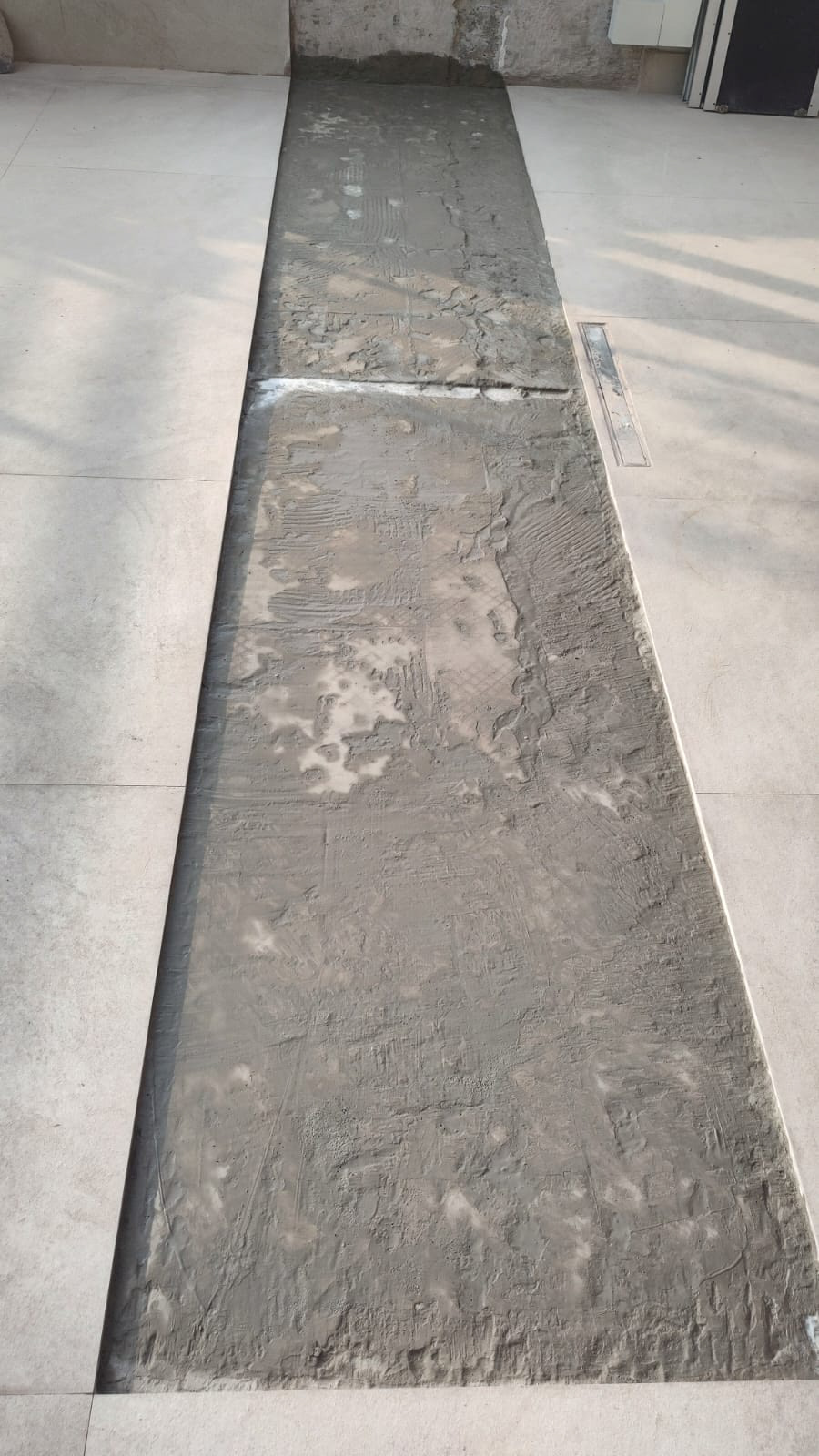 recorte no piso que deverá ser fechado com a marcenaria