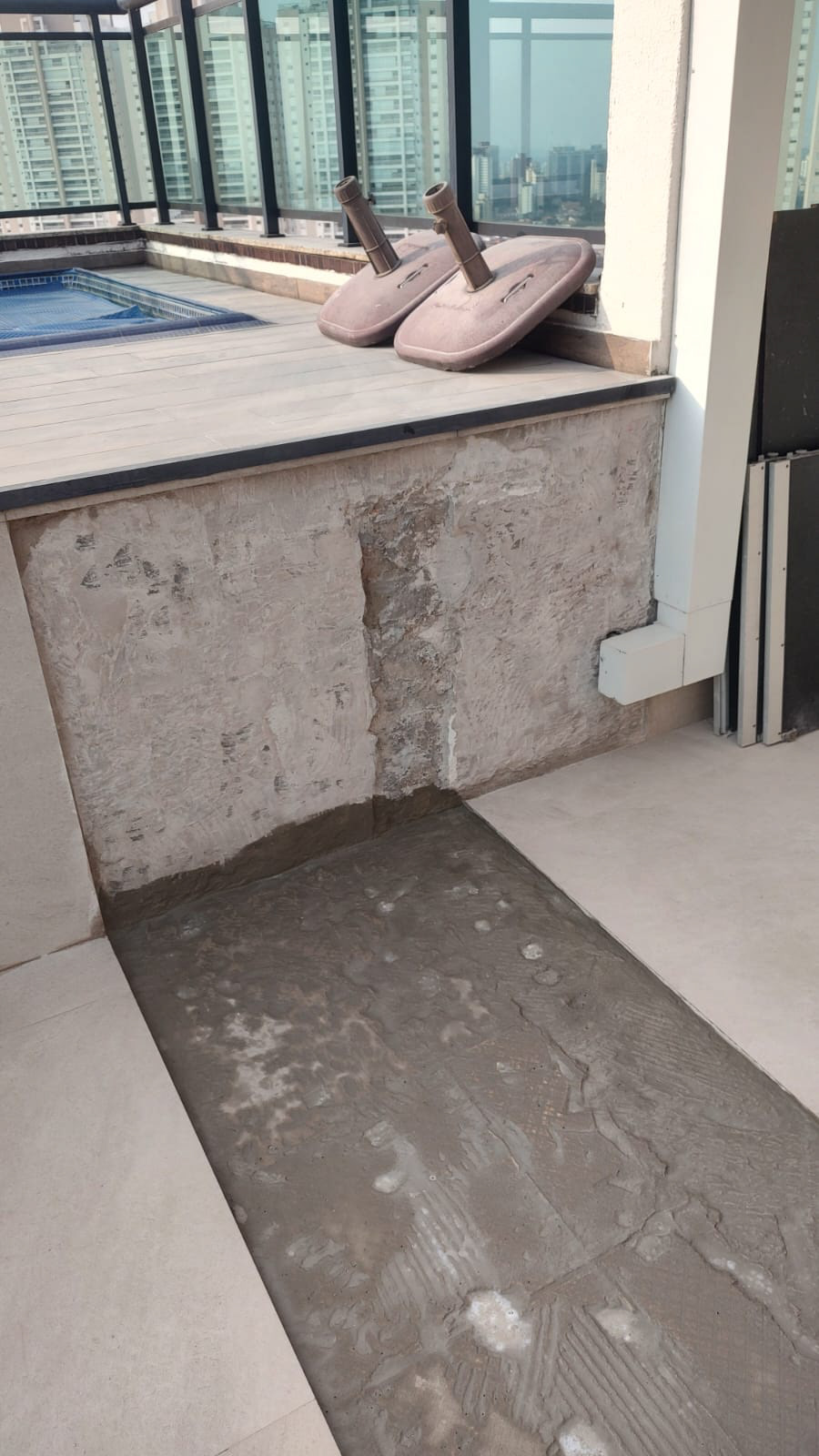 Base de alvenaria instalada com revestimento, conforme solicitado em obra