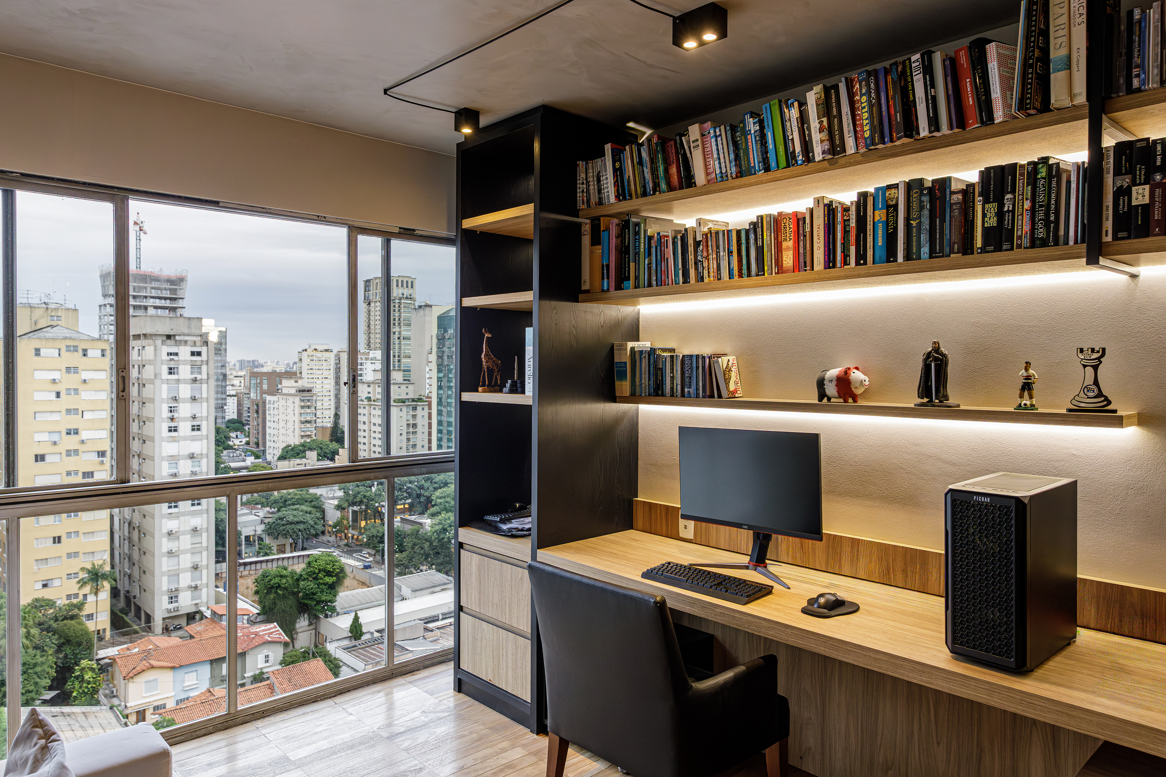 E no coração da casa, uma surpresa afetiva: a cozinha em tons de amarelo e cinza. Mais do que uma escolha estética, esse espaço é uma ponte para o passado — uma alusão ao antigo apartamento que o cliente amava, trazendo as melhores memórias para o novo lar.